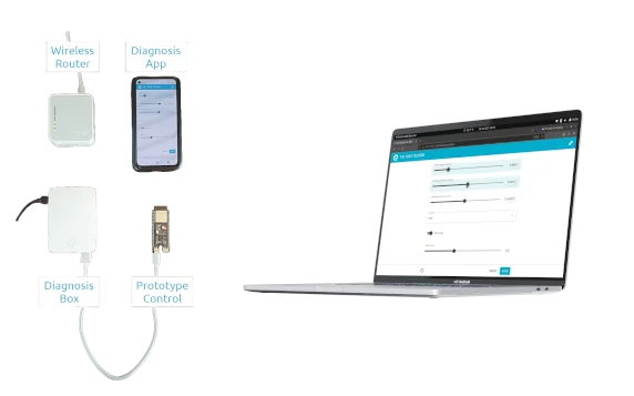 Für meinen Kunden habe ich dieses System entwickelt, mit dem Werte zur Laufzeit über eine leicht zu handhabende Web App vom Prototypen ausgelesen und angepasst werden können.